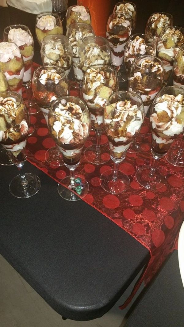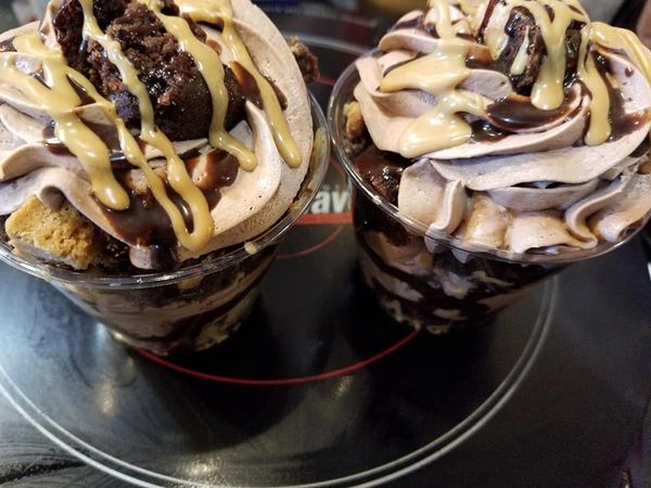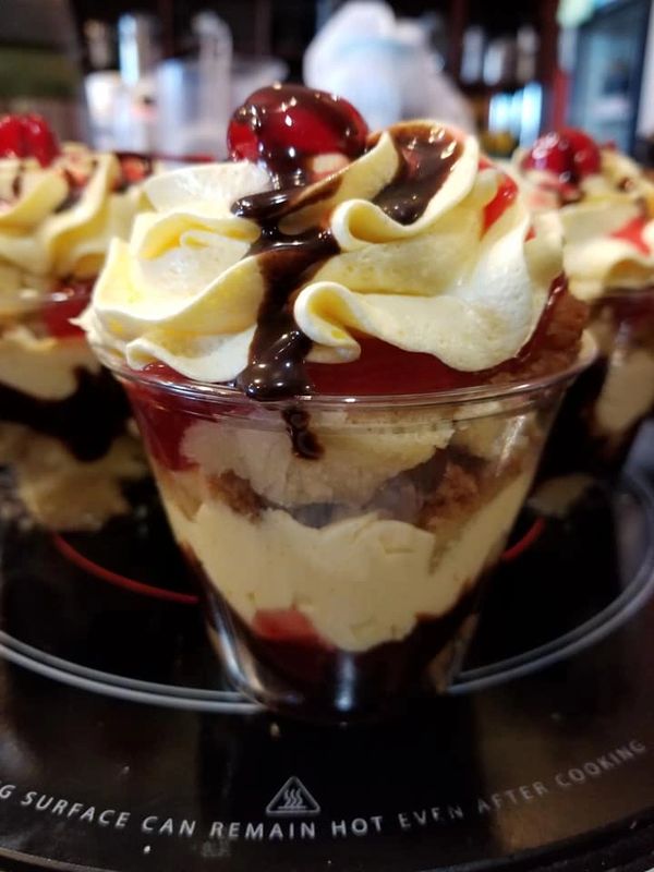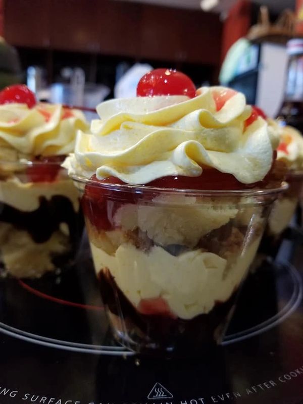 Trifle Mousse Cups and Bowls are custom creations based on flavors discussed with your sales rep. Pound cake, Brownie or Dessert Bar Bites layered with Mousse, Fillings, Fruit, candy, coconut, nut accents. Lets us create yours today. Below is a list of popular flavor request.